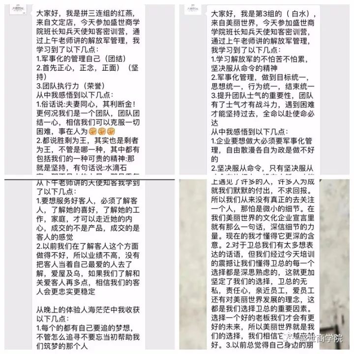 有所思,有所悟,上课不是目的,课程的初衷是让学员学习收获。在这场课程中,美丽世界的家人们收获很多,从家庭责任,到工作态度,到工作方式,他们都有很深的感悟,将把《班长知兵·天使知客》的知识带到以后的工作生活当中去,越变越优秀。