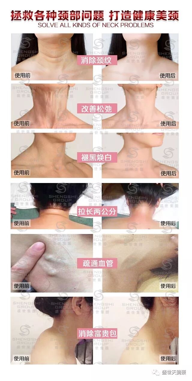 配合6D美颈专利技术和美颈三十六式技法,以及专利仪器青春定格仪,定点、定层、定位,全方面改善颈椎老损、疏通颈部淋巴,促进血液循环、淋巴代谢,促进大脑供血、改善失眠多梦,增加颈部胶原蛋白、抚平颈部细纹,延缓颈部衰老、改善颈部轮廓等。